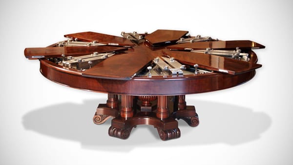 Undoubtedly one of the most innovative tables in modern times, the Fletcher Capstan Table from Fletcher Tables is what every home needs. It doubles its seating capacity automatically while remaining circular in the process. It has self positioning expansion leaves which allow it to expand yet still remain shapely.