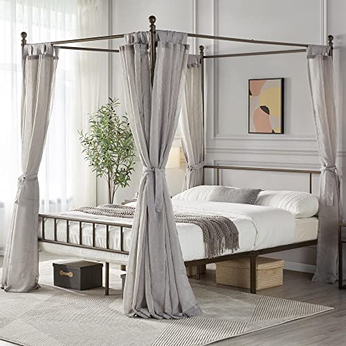This metal canopy bed deserves a try if you want a bed that combines function and style flawlessly. Showcasing clean lines and four canopy posts, this bed will bring a touch of elegance and warmth to your living space. The ball finials on the top add more beautiful details, and you can add your favorite curtain or other decoration to show your unique taste.