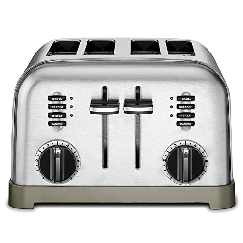 Bring the classical beauty and powerful performance of the Cuisinart home with this timeless classic. A blending of stainless steel and black painted steel makes this toaster a must have for those who desire classical culinary design. The Compact Stainless Toaster brings retro classic design to your home and delivers performance with powerful features such as reheat, bagel and defrost functions. Clean up is easy with the removable crumb tray. It even has a cord wrap underneath the unit to manage unsightly power cords while not in use.
