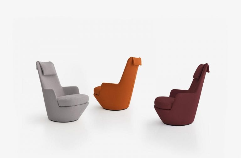 Designed with a carefully hidden circular metal base, Hi Turn smoothly glides on a 3600 plane breaking free from any confines and blending effortlessly into open-plan living spaces. The armchair espouses the ideals of comfort with its softly reclined high back which features a supple overlaid headrest for enhanced relaxation. With a wide array of colors to choose from, it will add an appealing dash of contrast to any living area.