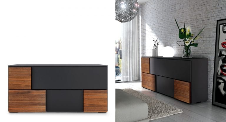 Solidity, harmony, and precision are the main qualities of these Storage Units by Oliver B. The pieces have lovely facades comprised of contrasting compartments. Some compartments have wood exteriors while others are finished in black.