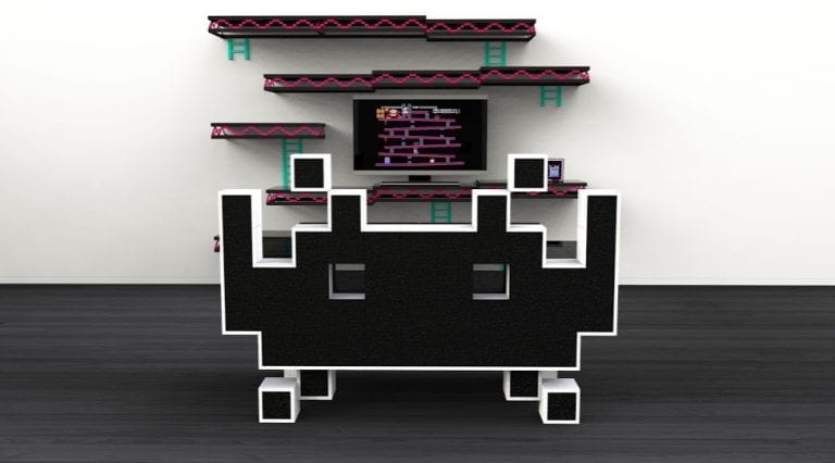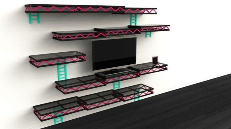 Embellished with anodized aluminum pixels the Donkey Kong Wall system is arranged in a staggered fashion, resembling the ascending game levels, transforming you to the world of ethereal gaming. The furniture exhibits both functionality and aesthetic qualities apart from it being sturdy and durable. With all that is said above, Donkey Kong shelf, sure has a character of its own and a formidable one at that.