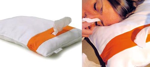 Have allergies? Or worse nursing a broken heart? Then have a good cry in bed and ensure you don't ruin the sheets by using the refillable Kleenex-dispenser that comes attached to this pillow.