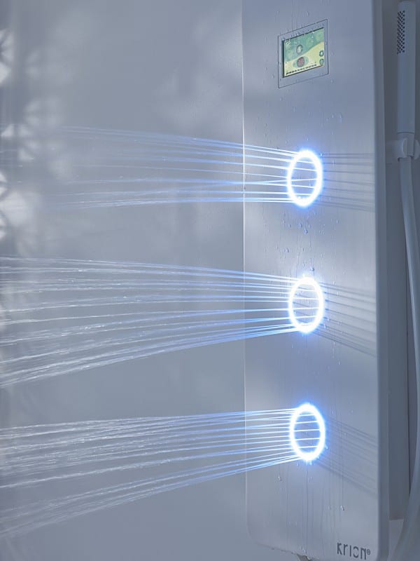 The Touch Shower Column engenders three possible configurations including integrated column or individual control panel with spray on the wall or ceiling. KRION®Lux, forms the key constituent material, that amalgamates the most challenging construction techniques and design ideas. The physical attributes of this futuristic bathroom accessory includes a solid surface, with straight sections, rounded edges and a superior matt finished surface, that integrates a touch screen for simple and intuitive control.