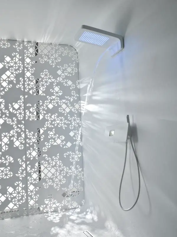 The Touch wall mounted rain-head by System Pool brings forth a new concept for your sensory delight, with state-of-the-art technology, proffering different programs to meet the requisites of every possible mood namely; Balancing, Relaxing, Energizing, and the possibility of manual control of the shower modes, water temperature, chromotherapy, aromatherapy, music or even radio! The Touch Shower Column exhibits the latest technology with great aesthetic sophistication and is designed to adapt to any space in the bathroom, making showering a daily pleasure.