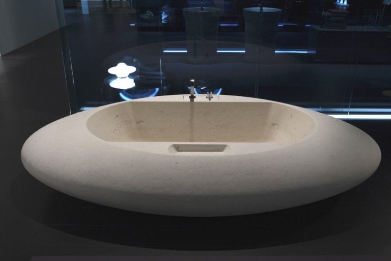 Sometimes, furniture designers create pieces that are more art than furniture. Such is the case with the Arca Bathtub. Designed by Carlo Colombo for Antonio Lupi, it is a true sculpture. It is made in moonstone and is rough on the outside and smooth on the inside. Its polished interior shows off its lovely texture.