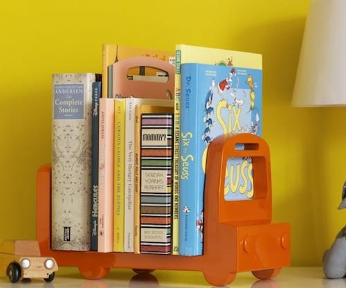 Shaped like a bus, this bright and funky bookshelf is perfect for a child's bedroom and can hold bedtime books and can also be used as a decorative object. Measuring 12.75″w x 7.5″h x 7″d and available on Dwell for $124.00, the Bus Bookshelf is fun, functional and funky.