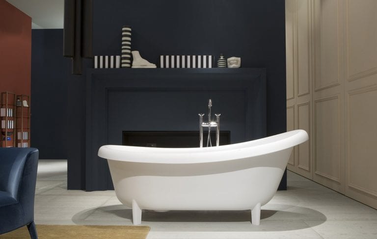 The ILBAGNO Bathroom Collection by Antonio Lupi is characterized by thin, sleek tapering legs. These stand out elegantly in all the pieces in the collection, from vanity consoles to bathtubs. Gentle, curving geometrical lines give the pieces unmatched elegance and style.