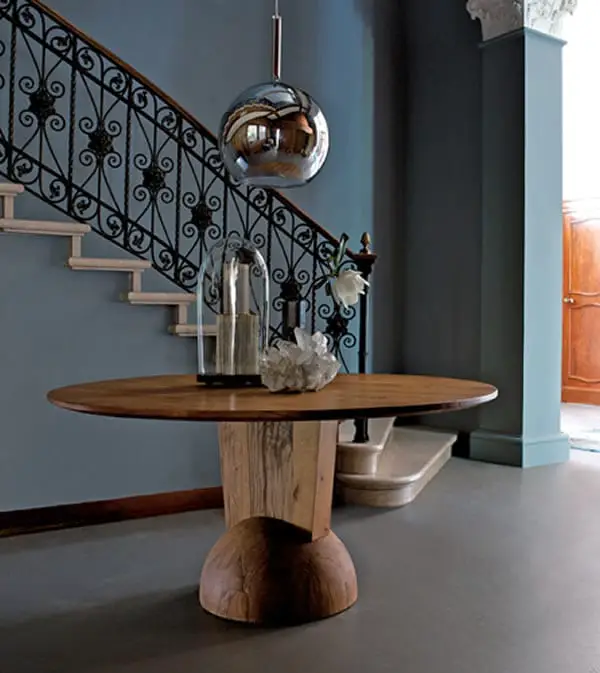 The most outstanding thing about the Brancusi Table by Estel is its base. It is made of old oak beams obtained from buildings dating back to the 1800s. The beams are chosen by a craftsman who ensures that they are of the highest quality before working on them. Afterwards, they are taken to a factory where they are planed, squared, and fused with dovetailed joints.