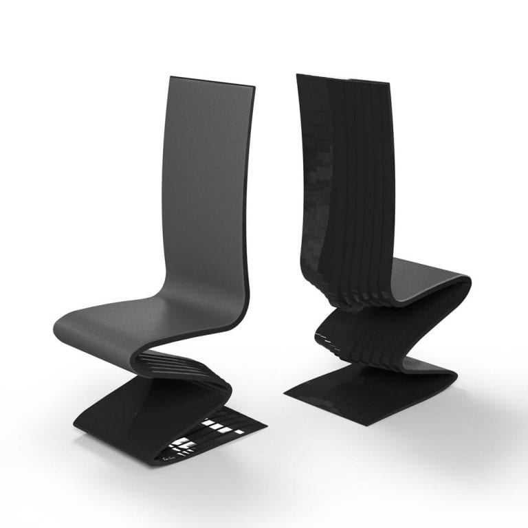 The back of the chair is marked with ripples that follow the overall form for a full 360-degree experience. Will you pair this bold chair with the sculptural table or stand it alone as a statement piece?