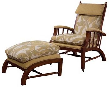 Two pieces I like from the collection are the Lanai chair and ottoman and the Dutch East Indies sofa. If you want to lay out in the sun or sit on the veranda, that is where the Lanai chair and ottoman come in.